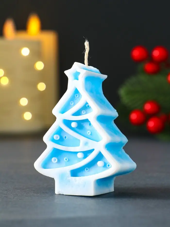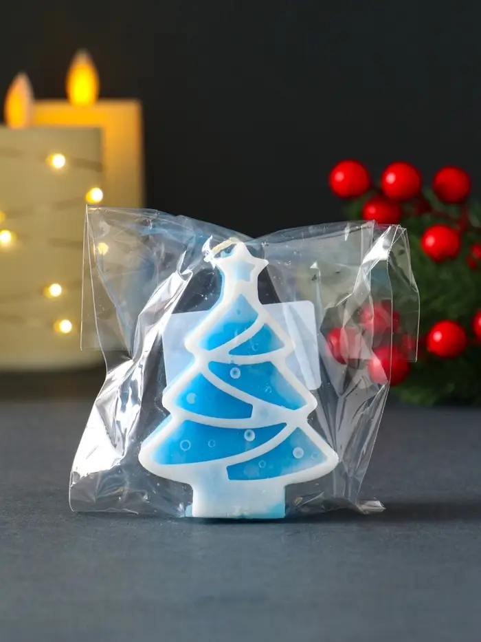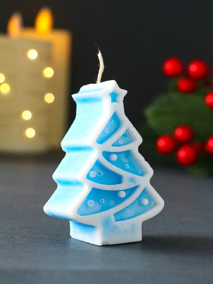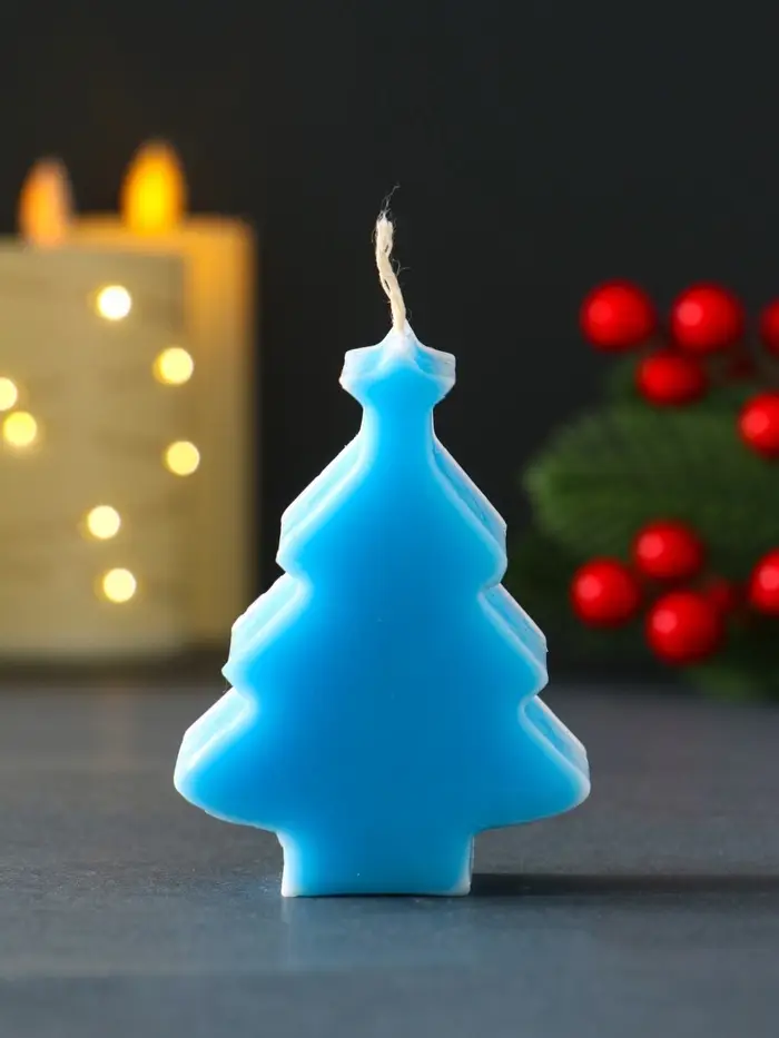 Свеча новогодняя "Ёлочка с гирляндой" 55х75 мм, голубой