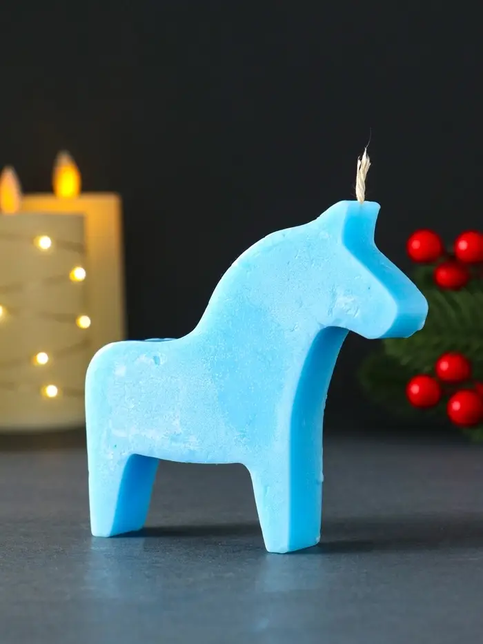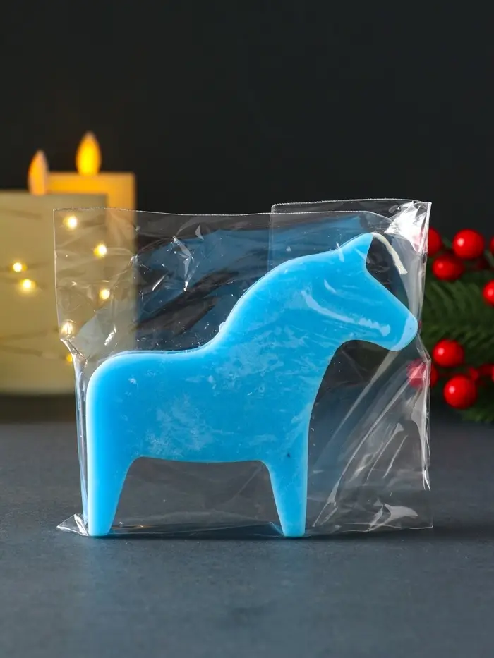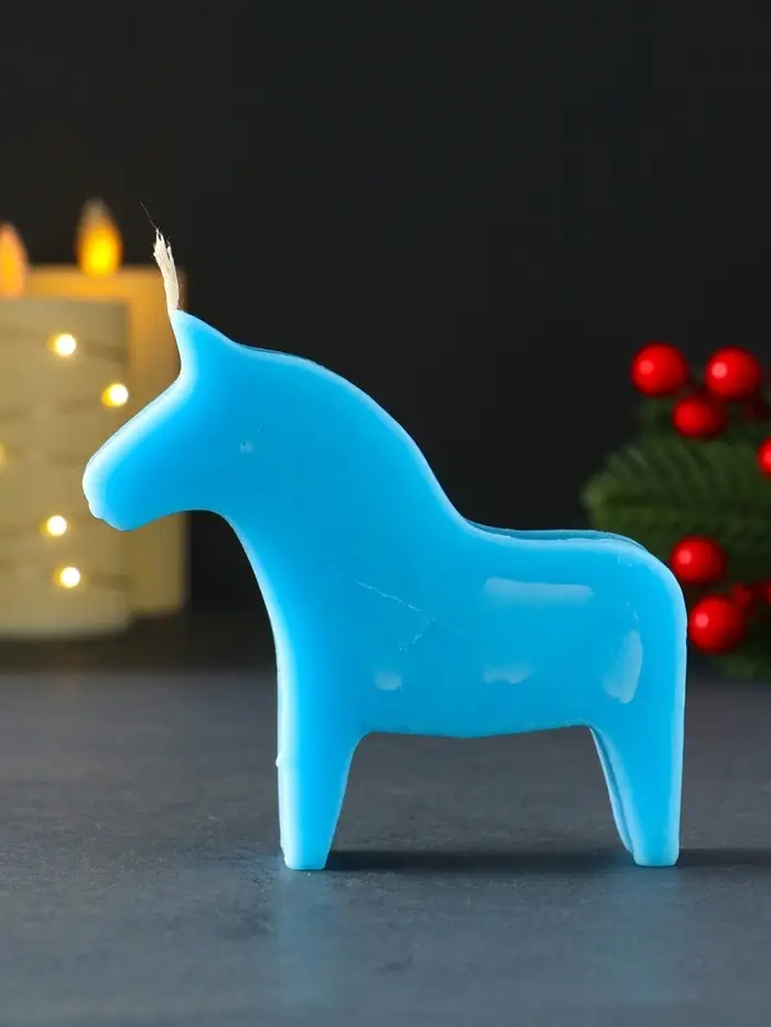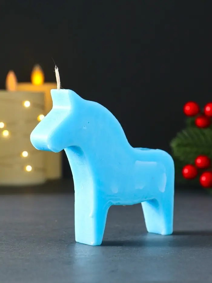 Свеча новогодняя "Лошадка" 110х100 мм, голубой