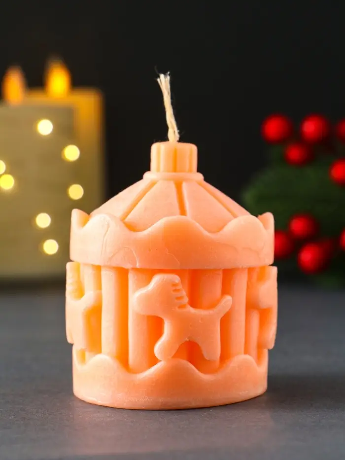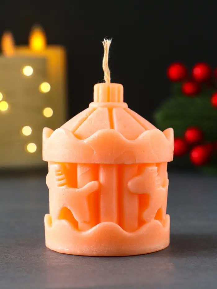 Свеча новогодняя "Карусель с лошадками" 60х80 мм, персиковый