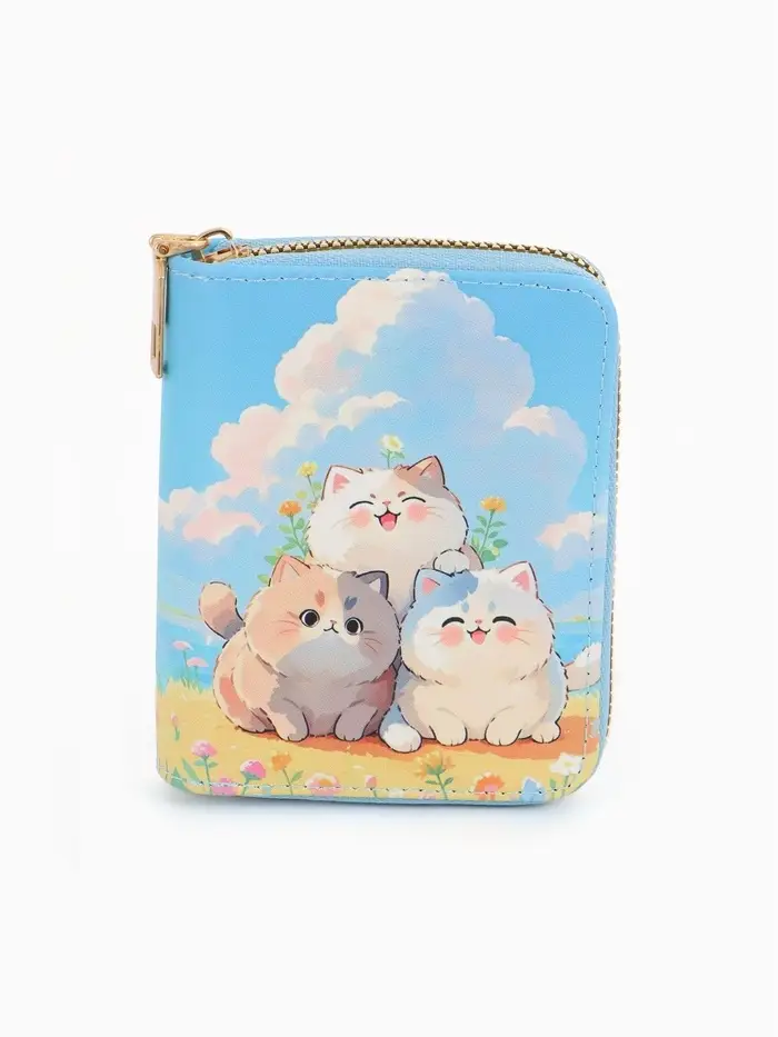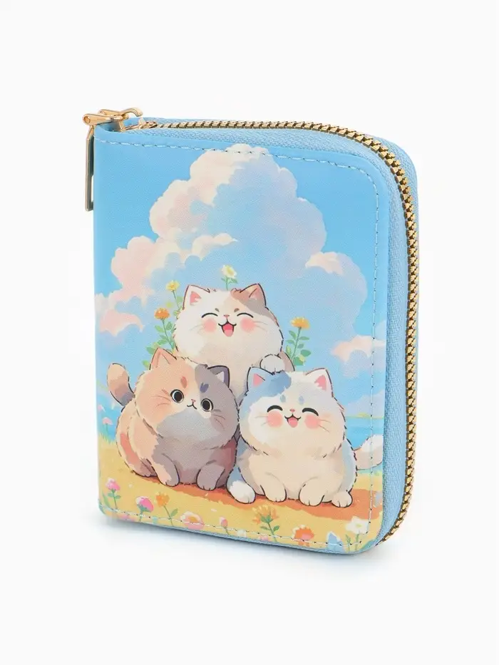 Кошелек дет 07-01-01 Июнь2545 кот, 8,5*2,5*10,5 см, 2 отд+отд/молн, д/карт, голубой