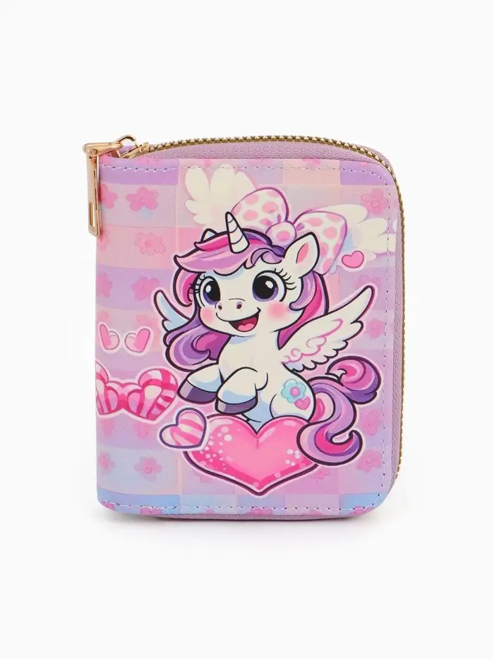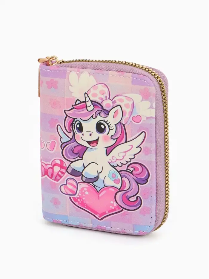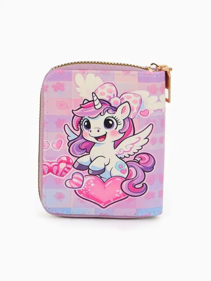 Кошелек дет 07-01-01 Июнь2549 единорог, 8,5*2,5*10,5 см, 2 отд+отд/молн, д/карт, розовый