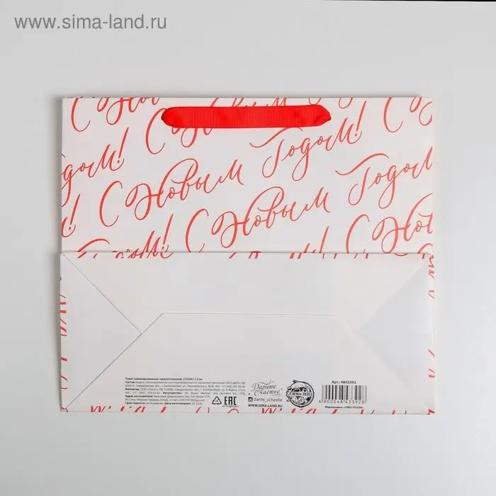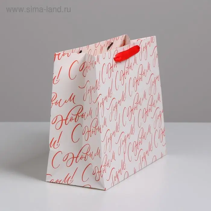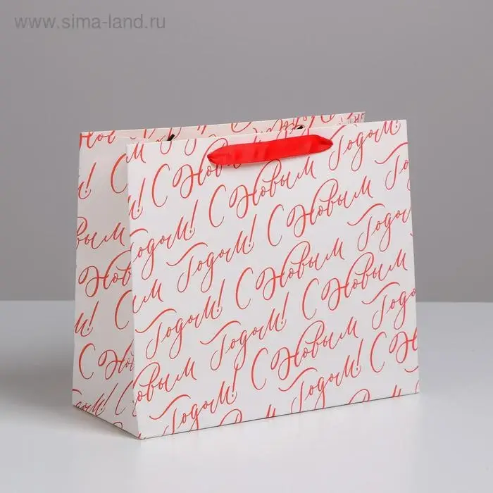 Пакет подарочный новогодний ламинированный «С Новым годом!», ML 27 х 23 х 11.5 см
