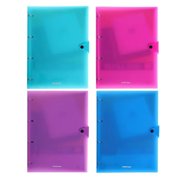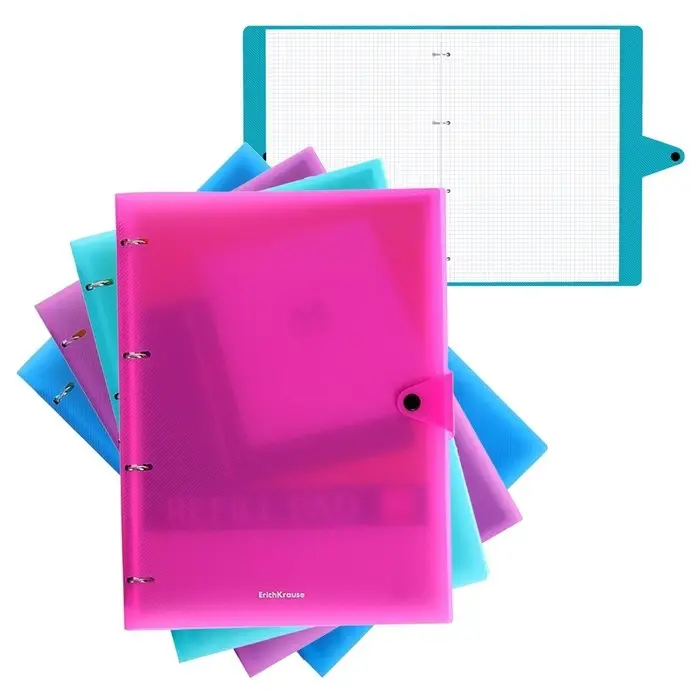 Тетрадь А4 на кольцах, 80 листов в клетку, ErichKrause Accent, пластиковая обложка, на кнопке, блок офсет 100% белизна, МИКС