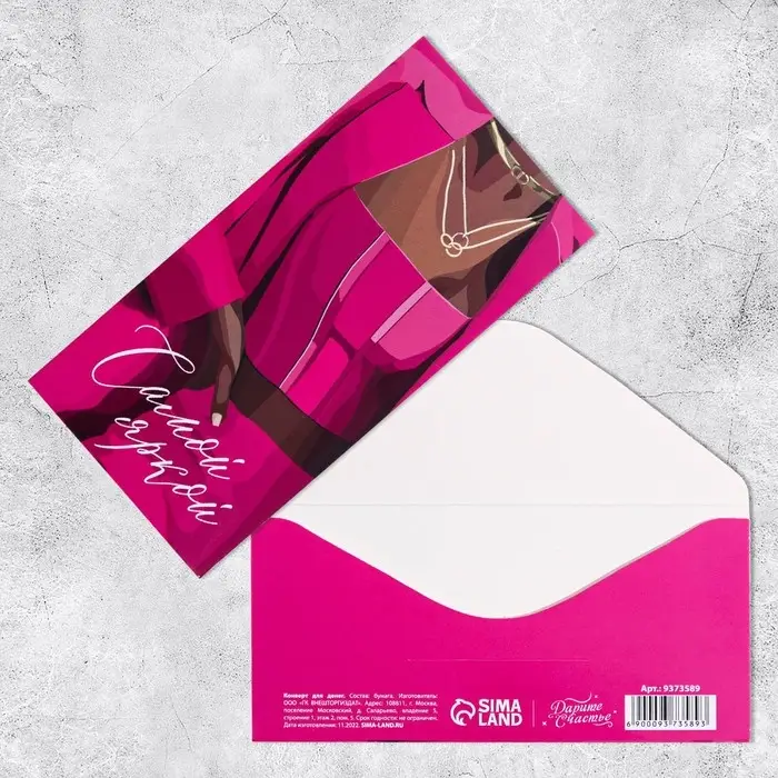 Конверт для денег «Самой яркой», девушка, 16,5 × 8см