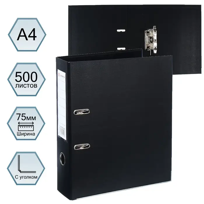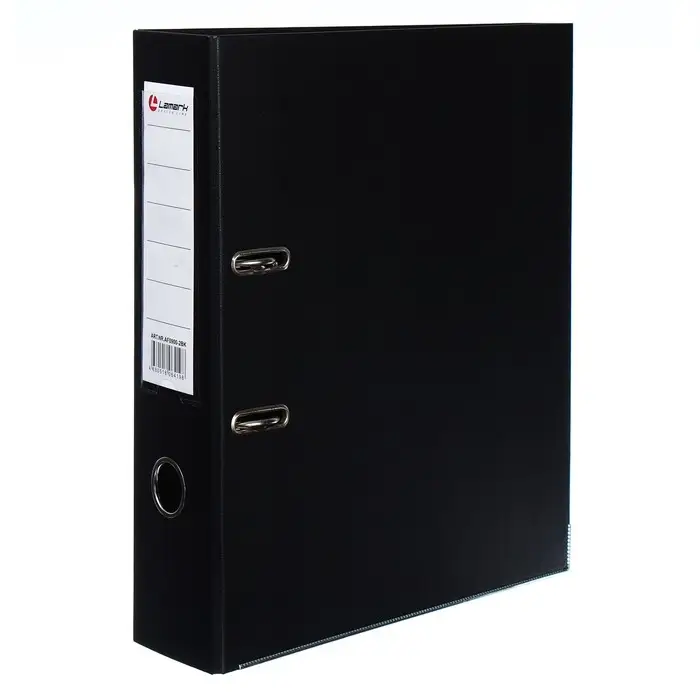 Папка-регистратор А4, 75 мм, Lamark, ПВХ, двухстороннее покрытие, металлическая окантовка, карман на корешок, собранная, черный/черный