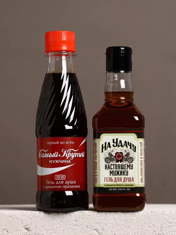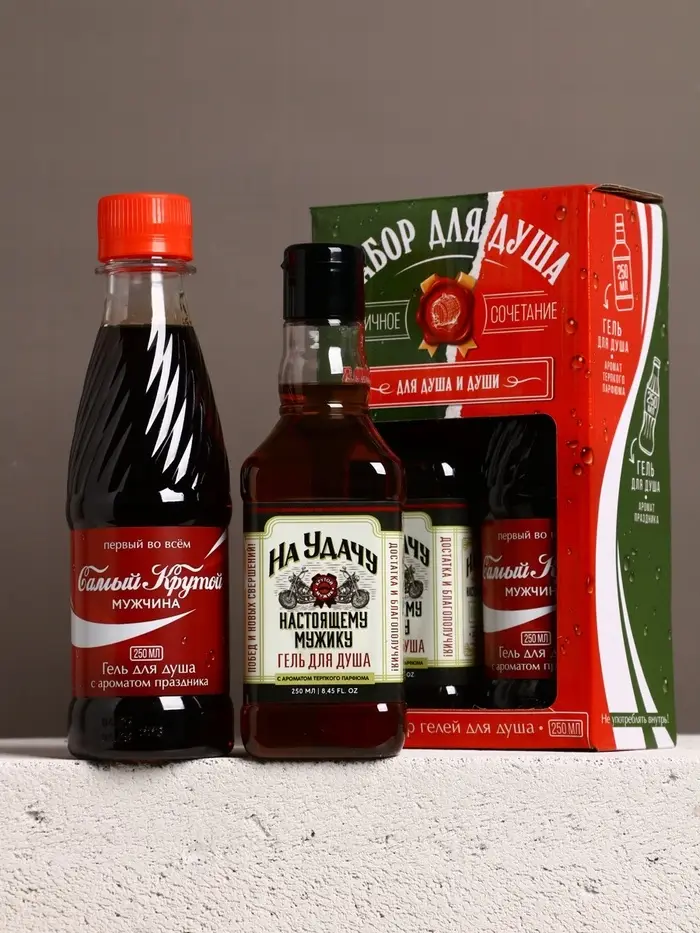 Подарочный набор «Для душа и души», гель для душа во флаконе виски и гель для душа кола, 2х250 мл, Чистое счастье