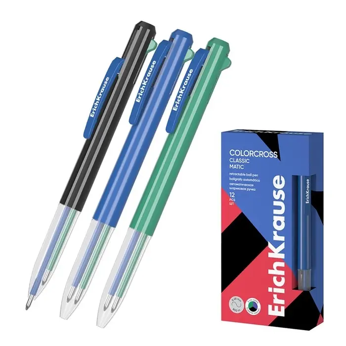 Ручка шариковая автомат 3в1 ErichKrause Colorcross, узел 0.7мм, син. зел. черн,