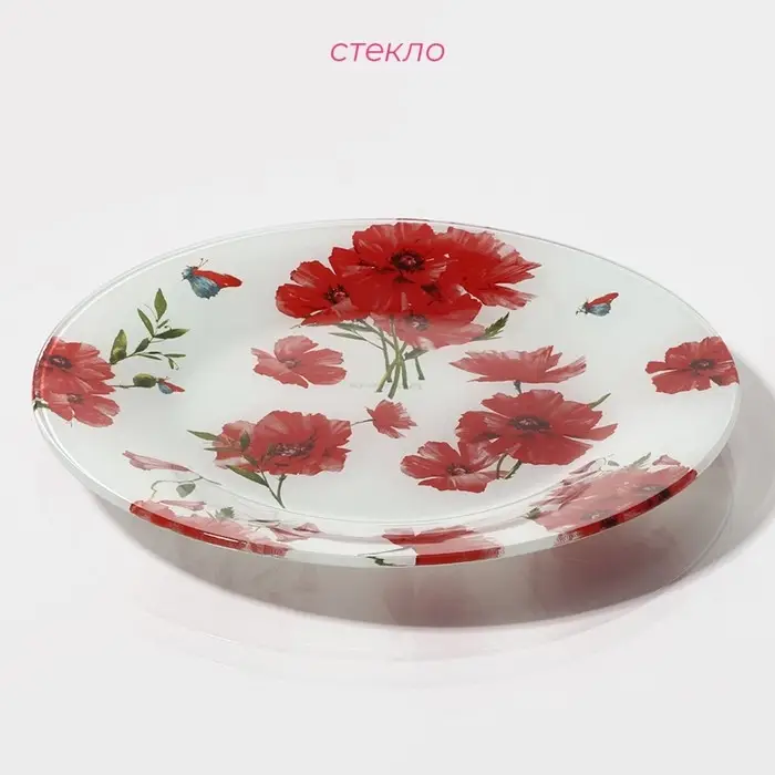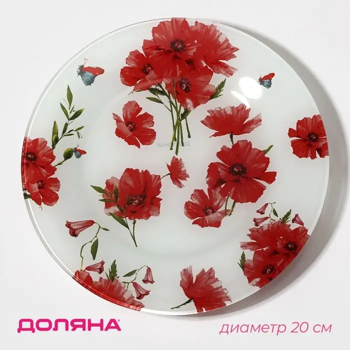 Тарелка стеклянная десертная Доляна «Красные маки», d=20 см