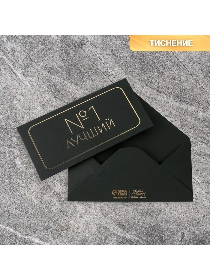 Конверт для денег «Лучший», черный крафт, тиснение, 16,5 × 8 см