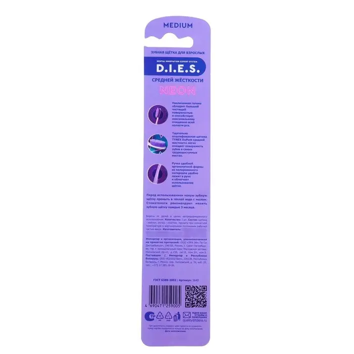 Зубная щетка D.I.E.S. Neon средней жесткости