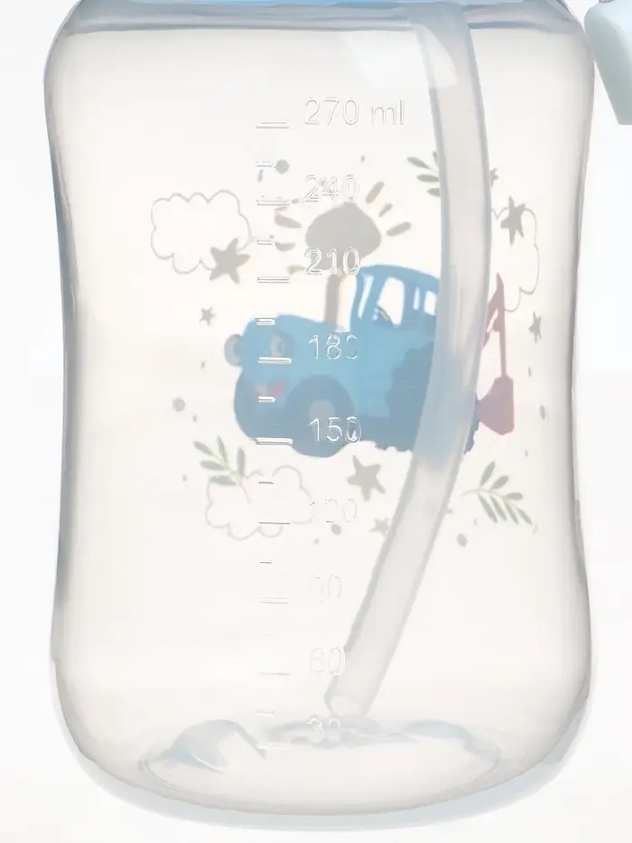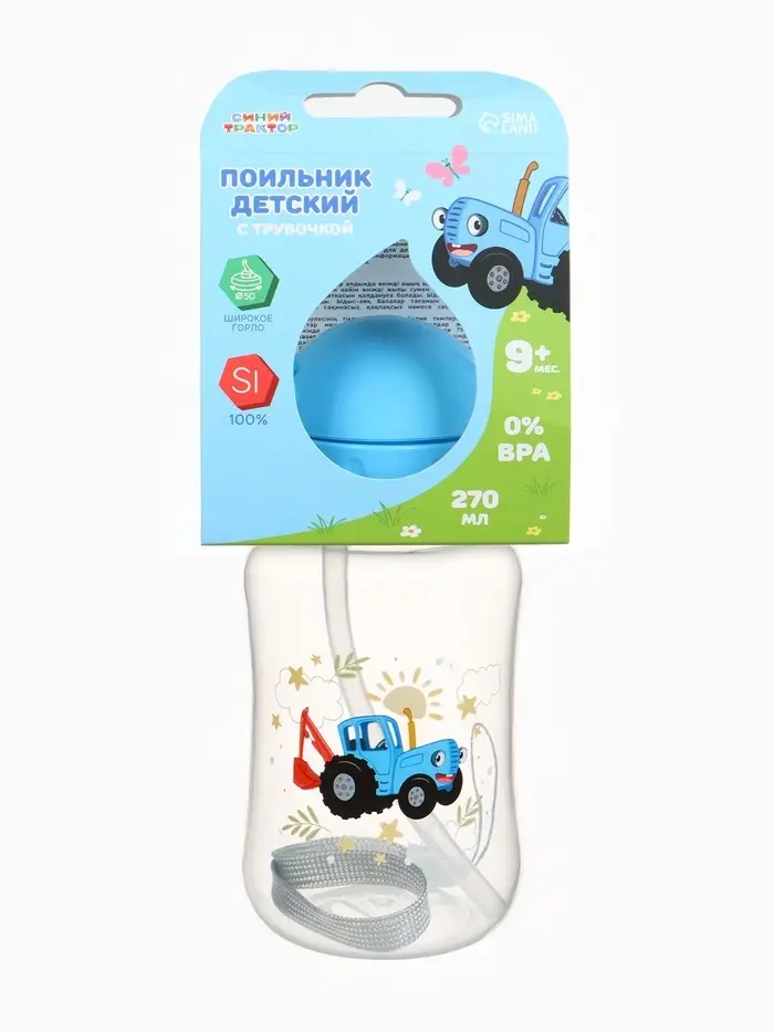 Поильник-непроливайка с трубочкой, 270 мл, Синий трактор