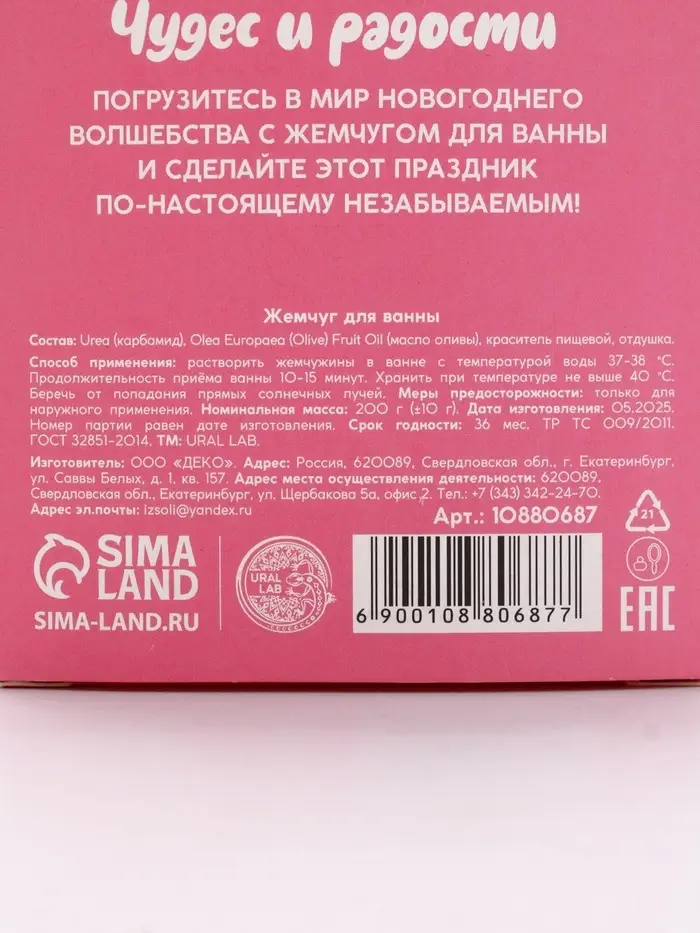Жемчуг для ванны «Чудес и радости», 200 г, аромат ванильный пряник, URAL LAB