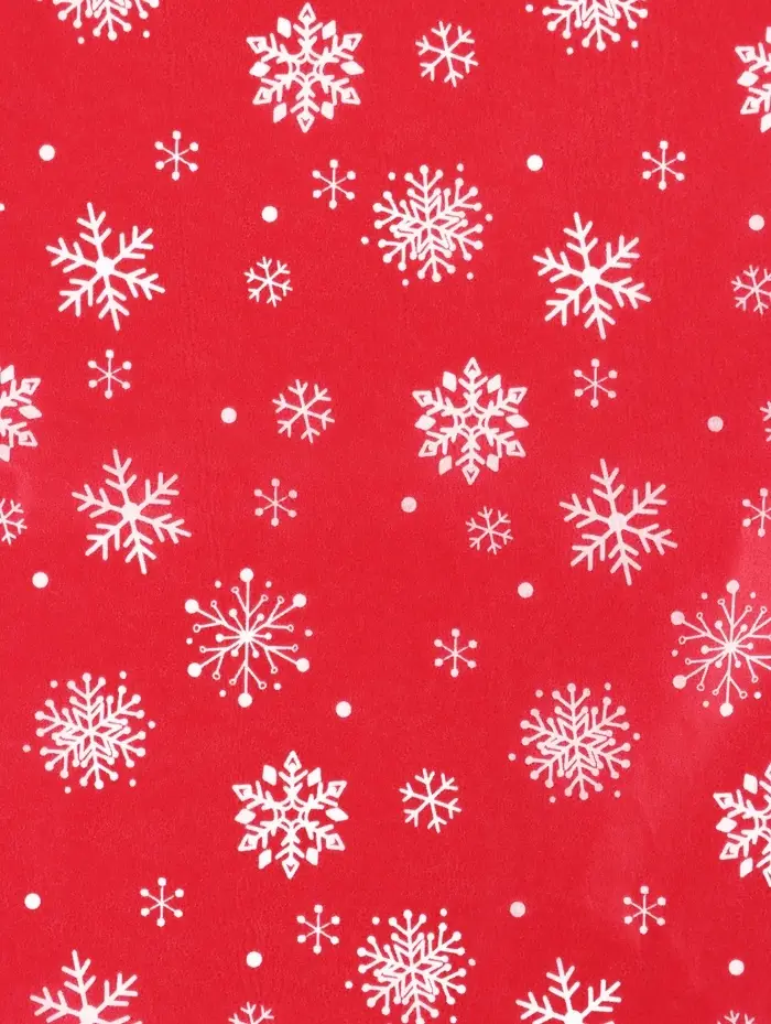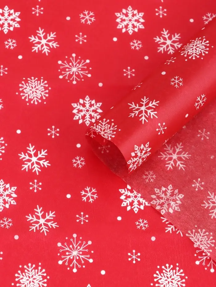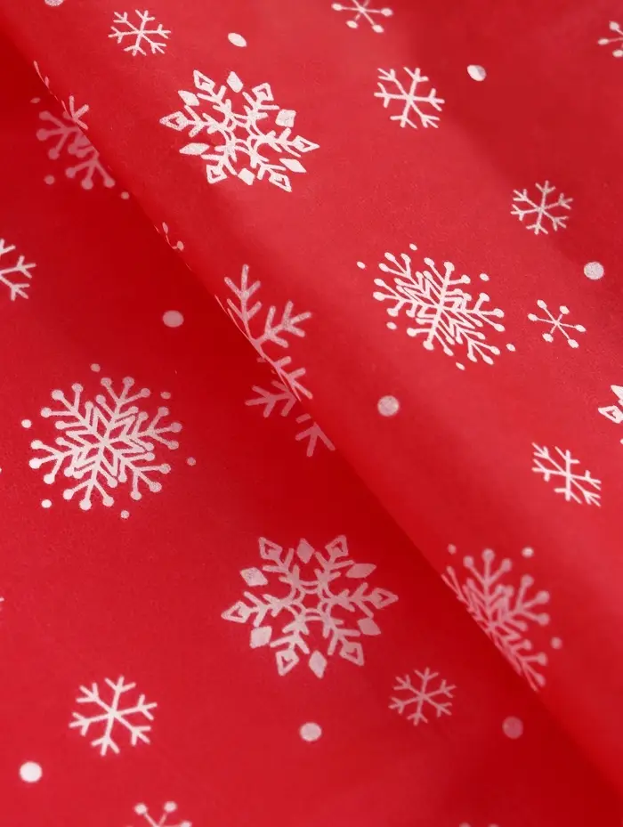 Бумага упаковочная тишью "Снежинки на красном", красная, 50 х 66 см