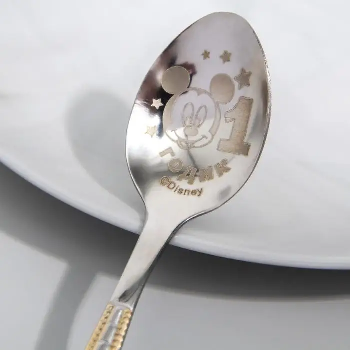 Наша уникальная разработка обязательно понравится малышу и его родителям! Эта детская ложечка с нанесением создана из нержавеющей стали и соответствует российским стандартам качества. К изделию прилагается открытка с Микки Маусом. В специальное поле вы можете вписать имя адресата и свои пожелания. Такой подарок никого не оставит равнодушным!