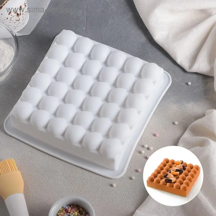 Форма для муссовых десертов и выпечки Доляна «Рябь», силикон, 18×18 см, внутренний размер 16×6,5 см, цвет белый