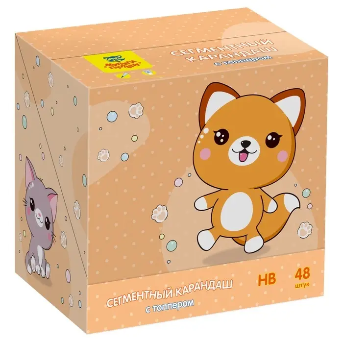 Карандаш чернографитный сегментный с ластиком «Мульти-Пульти» серии «Зверята» предназначен для рисования, чертежных и графических работ. Твердость грифеля – HB. Затупился или сломался кончик грифеля? Не беда. Десять быстрозаменяемых сегментов в корпусе помогут исправить ситуацию без применения точилки. Стильный принт на корпусе делает визуально карандаш ярче и интереснее.В наборе представлены 3 цветовые решения карандаша с контрастными сменными сегментами и ластиком в виде зверька на колпачке. Упакованы в дисплей-бокс по 48 штук.