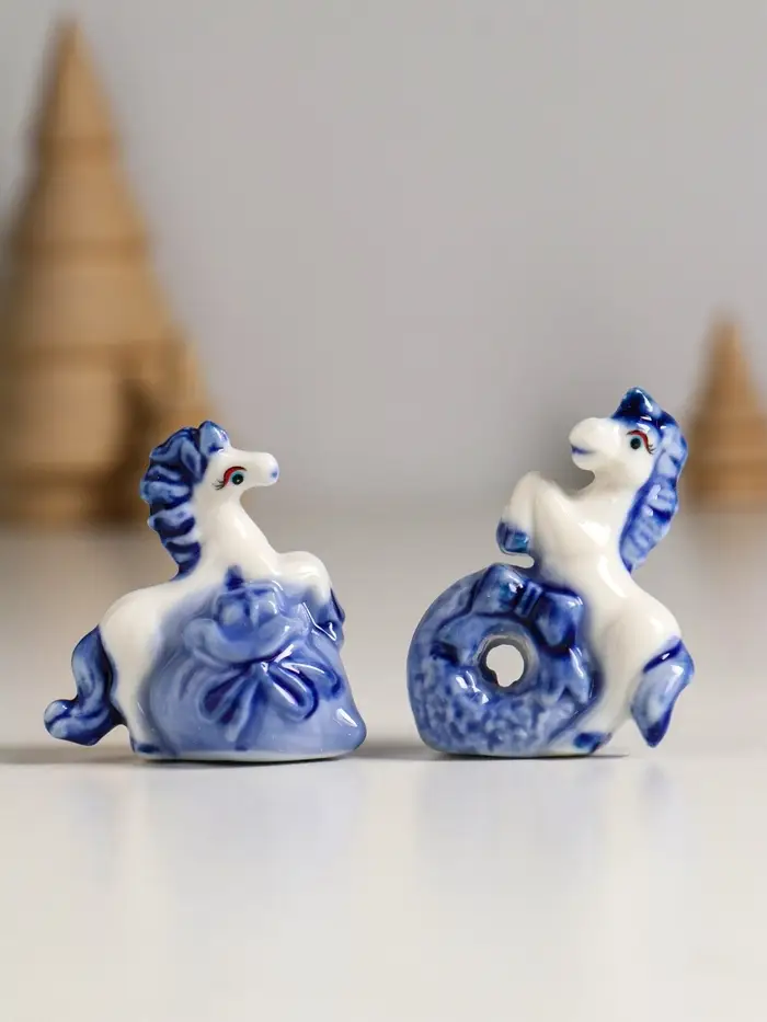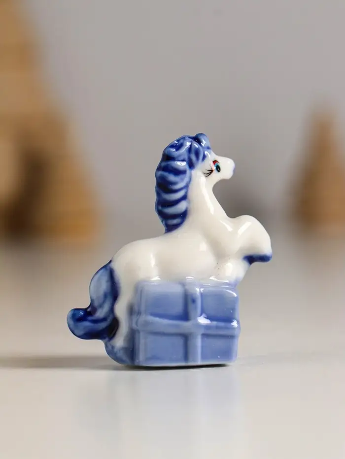 Сувенир керамика "Лошадка с подарком" бело-синий МИКС 4,1х2,6х4 см