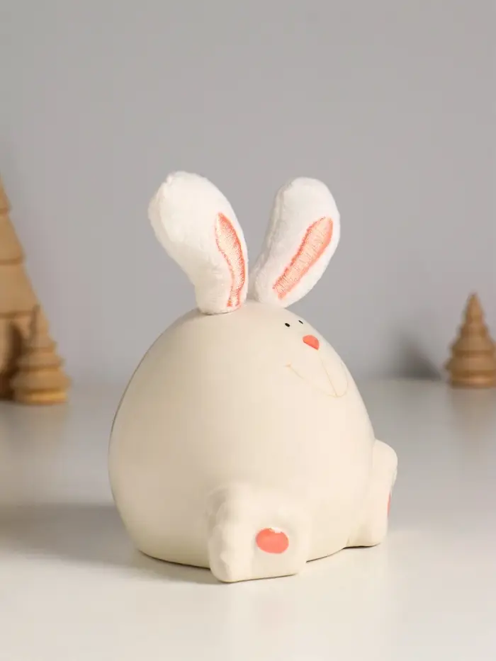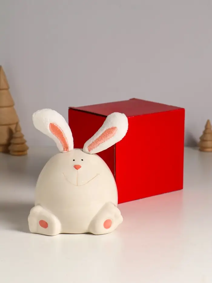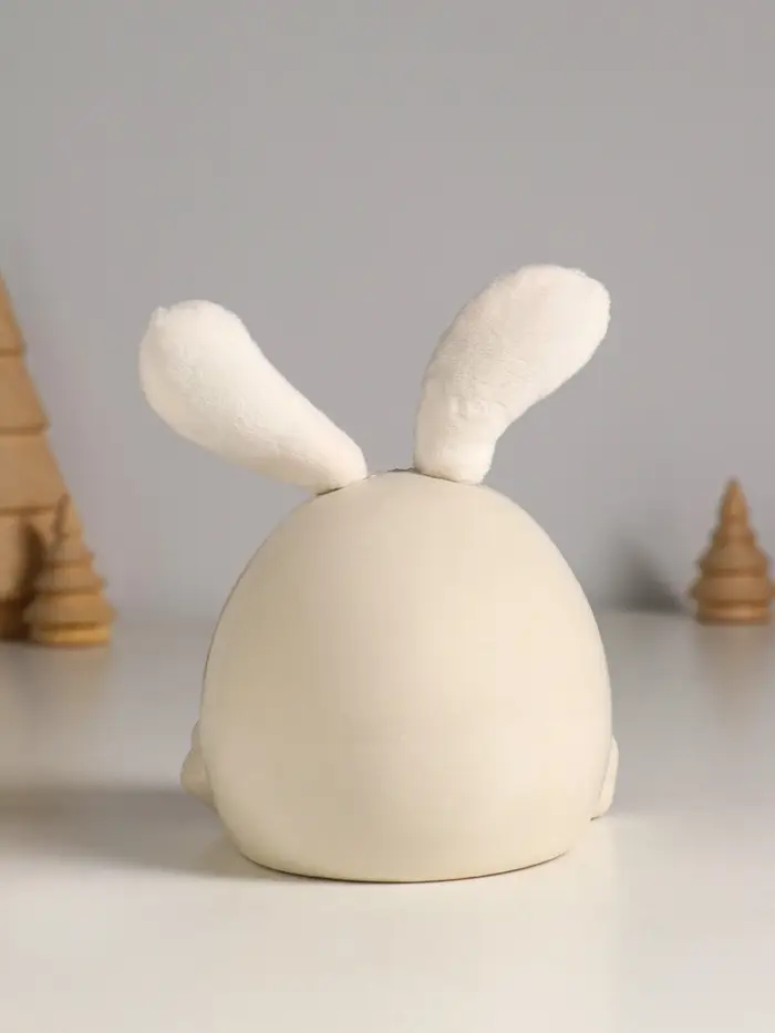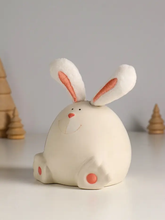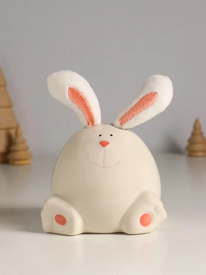 Сувенир керамика, текстиль "Зайчик круглый" белый 9х9,5х12 см