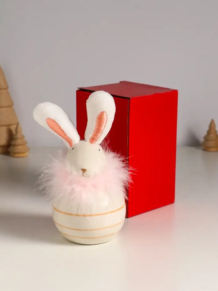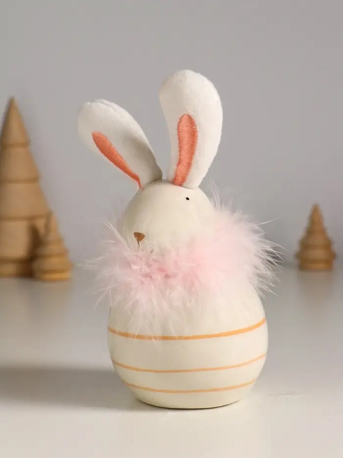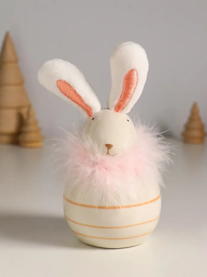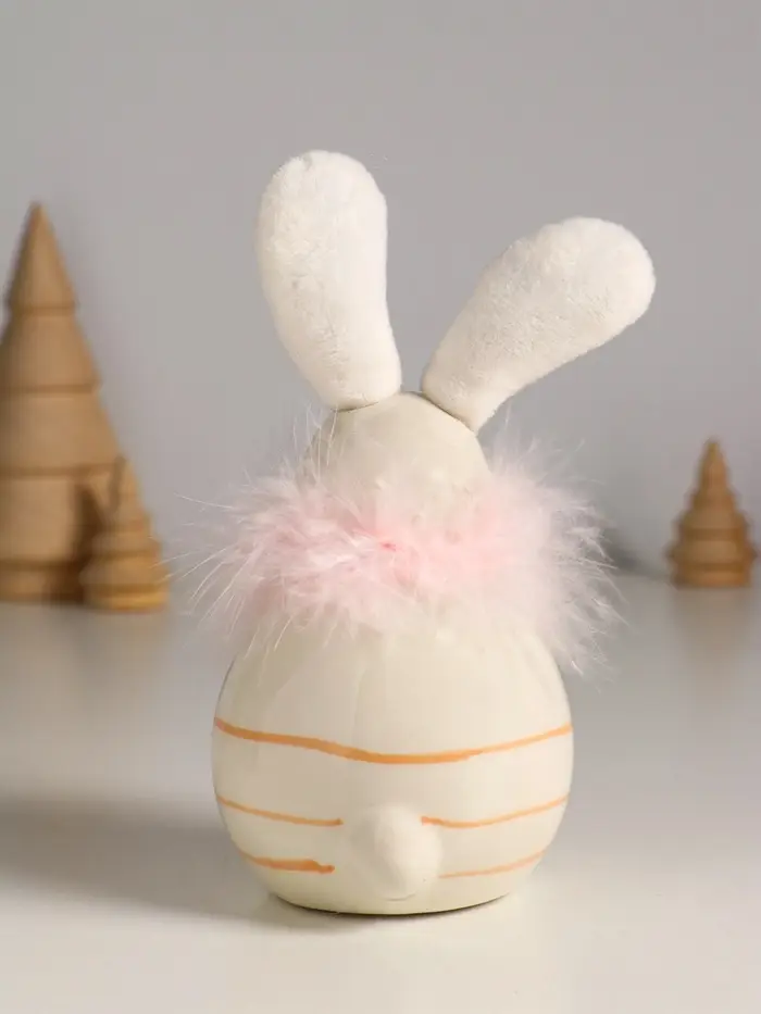 Сувенир керамика, текстиль "Зайчик с пухом, круглый" 7,4х7,4х15,5 см