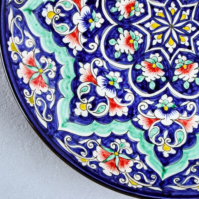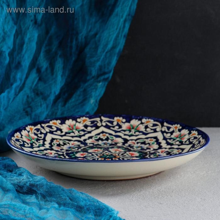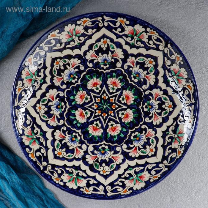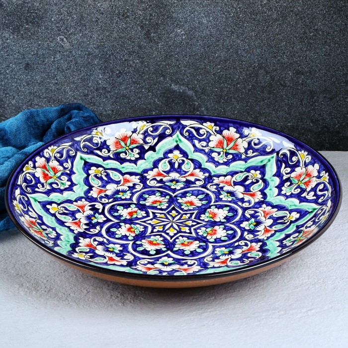 Ляган Риштанская Керамика "Цветы", 32 см, синий
