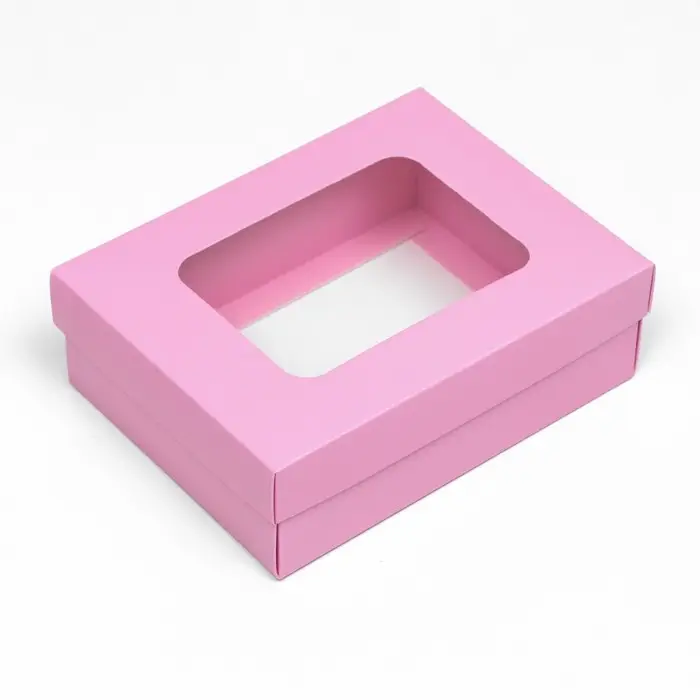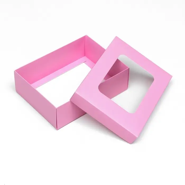 Коробка подарочная складная, упаковка, крышка-дно, с окном, розовая , 16,5 х 12,5 х 5,2 см