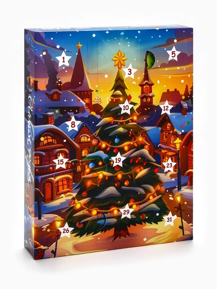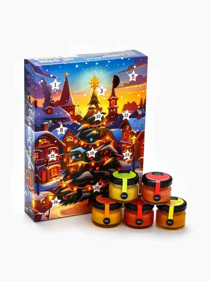 Адвент календарь новогодний с мёдом «С Новым Годом», облепиха, кедровые орешки, малина, цитрус, клубника