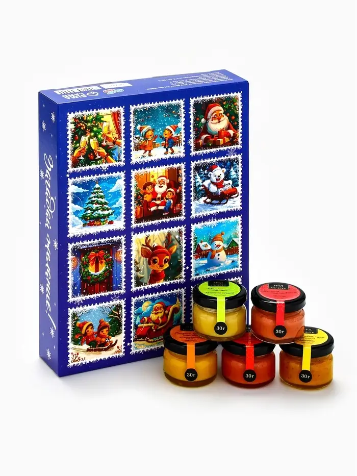 Адвент календарь новогодний с мёдом «Счастливого Нового года», облепиха, кедровые орешки, малина, цитрус, клубника