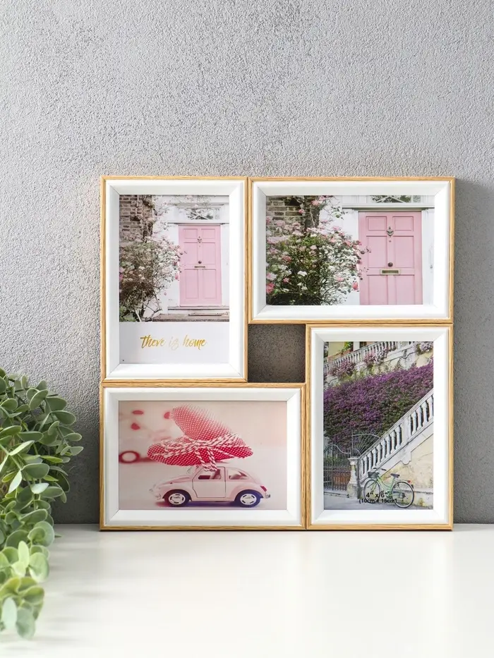 Фоторамка пластик на 4 фото 10х15 см "Двухцветная" бук и белый 30х30х2 см