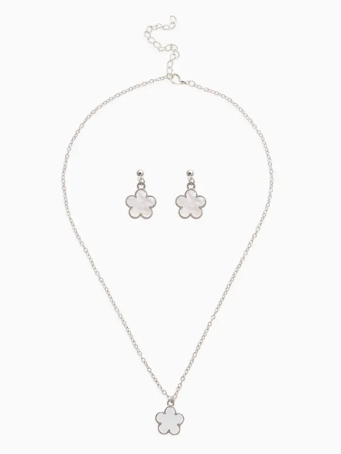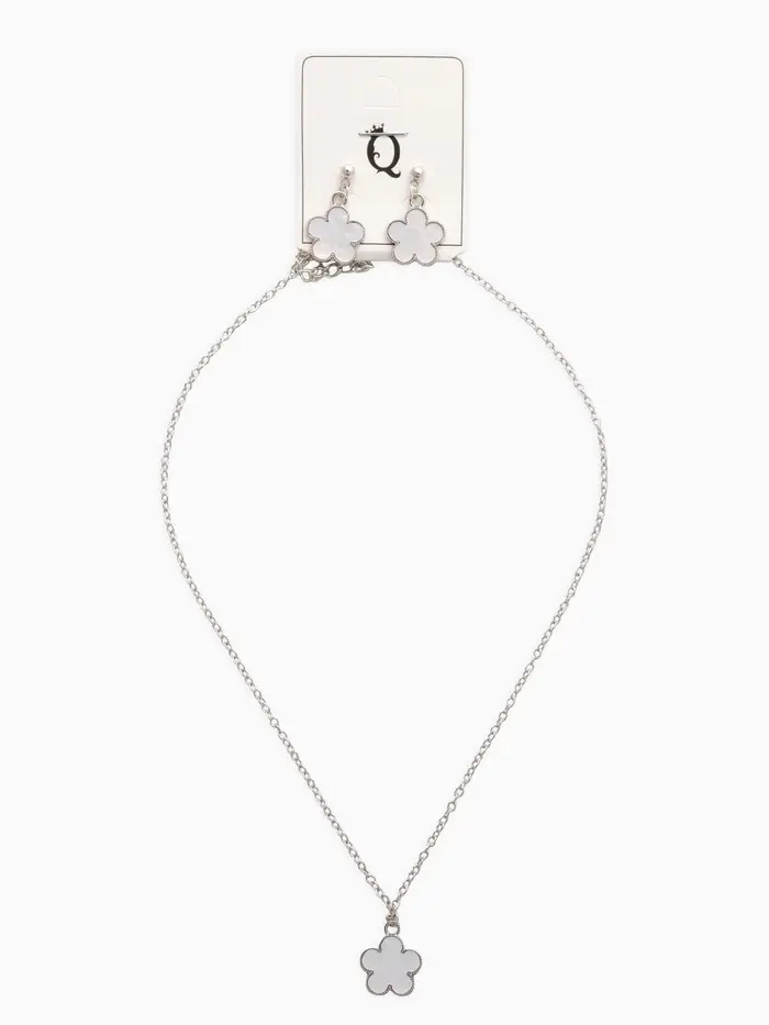 Набор 2 пред-та: серьги,кулон "Цветочки", цвет белый в серебре 44+удл.