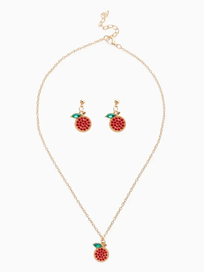 Набор 2 пред-та: серьги,кулон "Гранат", цвет красный в золоте 44+удл.
