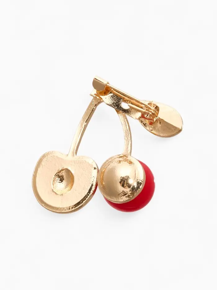 Брошь "Вишня с косточкой", цвет красно-зелёный в золоте