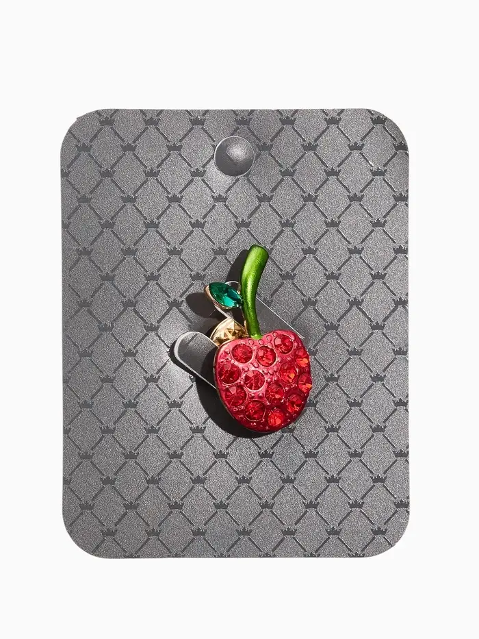 Брошь "Вишня стразинка", цвет красно-зелёный в золоте