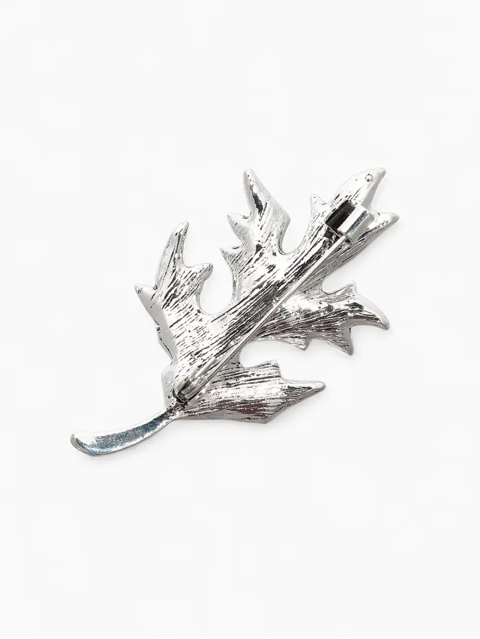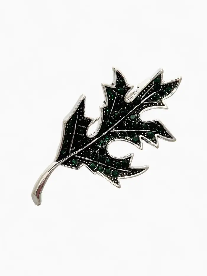 Брошь "Лист Одуванчика", цвет зелёный в чернёном серебре