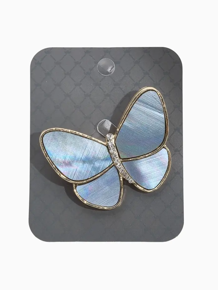Брошь "Бабочка" под перламутр, цвет бело-серый в золоте