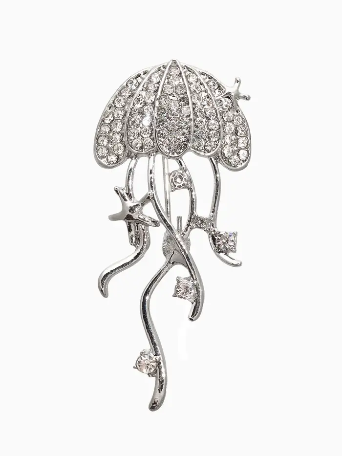 Брошь "Медуза", цвет белый в серебре