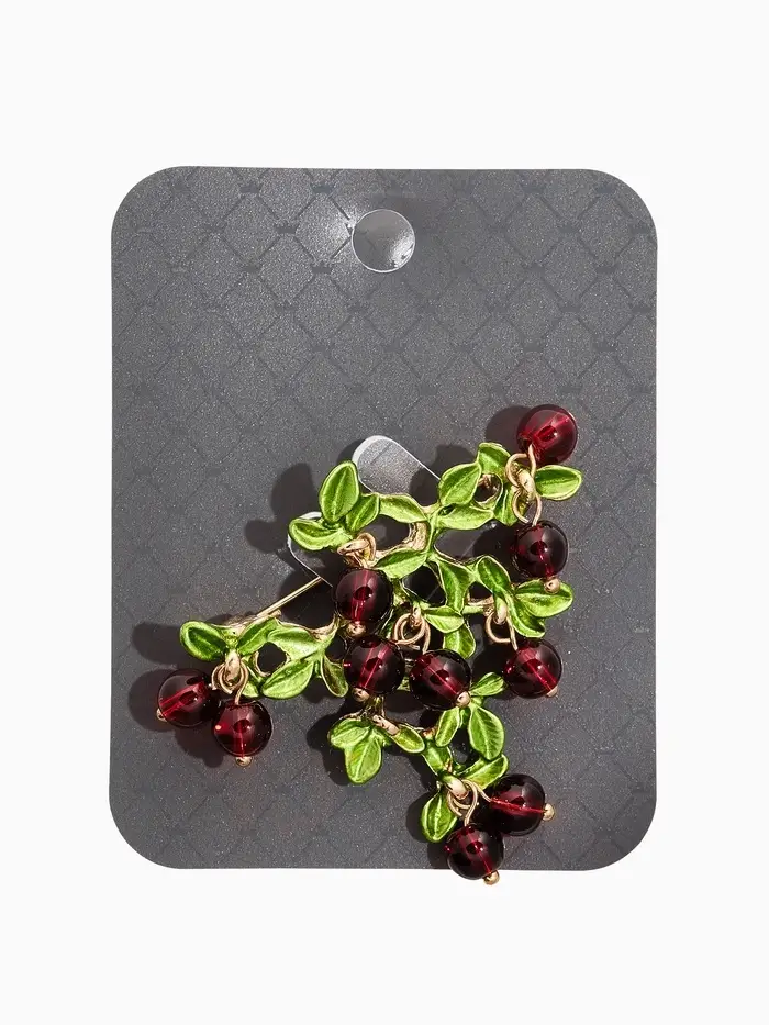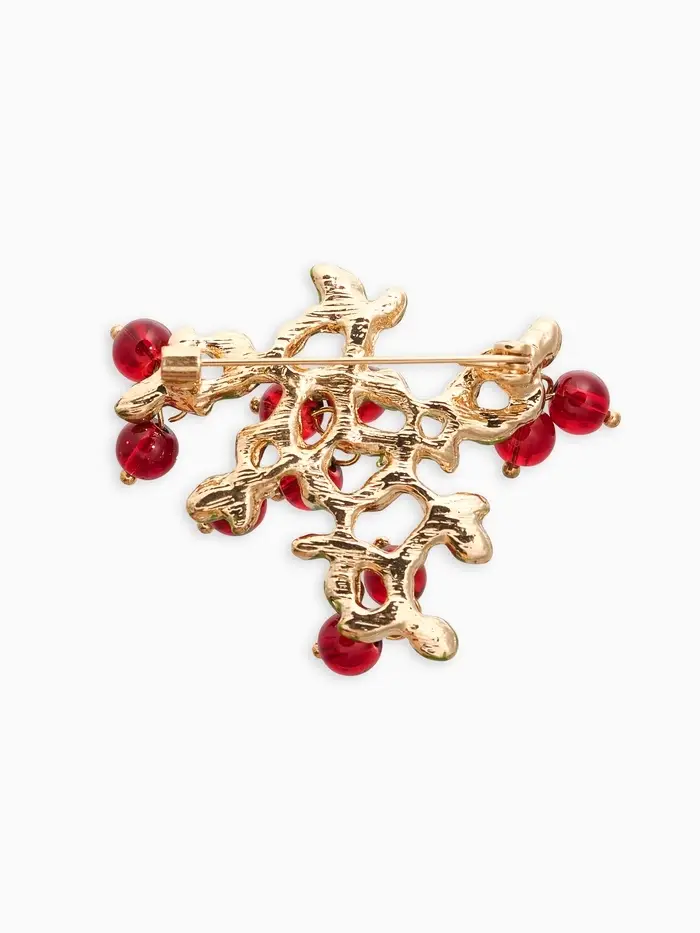 Брошь "Куст Вишни", цвет бордово-зелёный в золоте