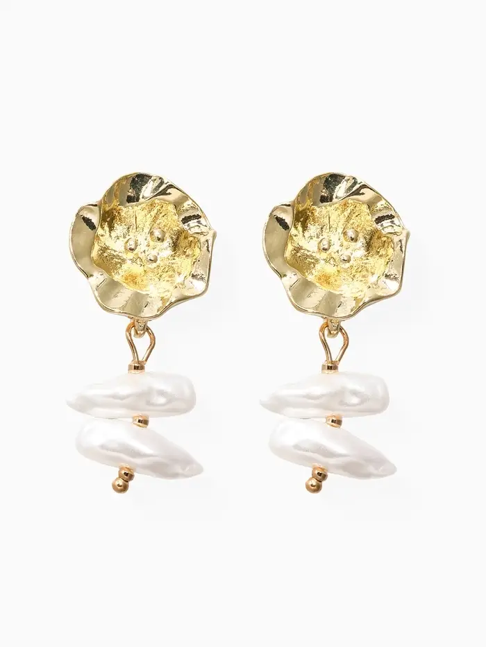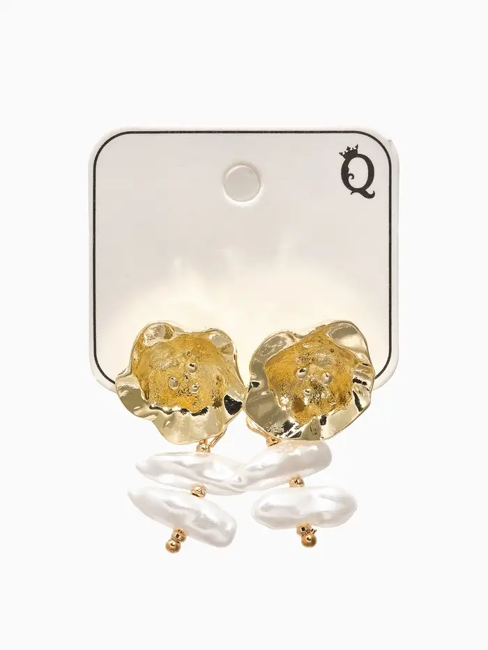 Серьги жемчуг "Цветы кувшинки", цвет белый в золоте