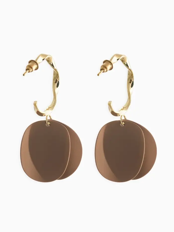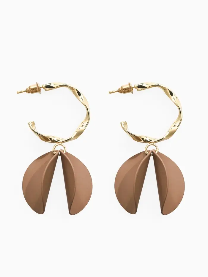 Серьги "Лепесточки на кольце", цвет коричневый в золоте