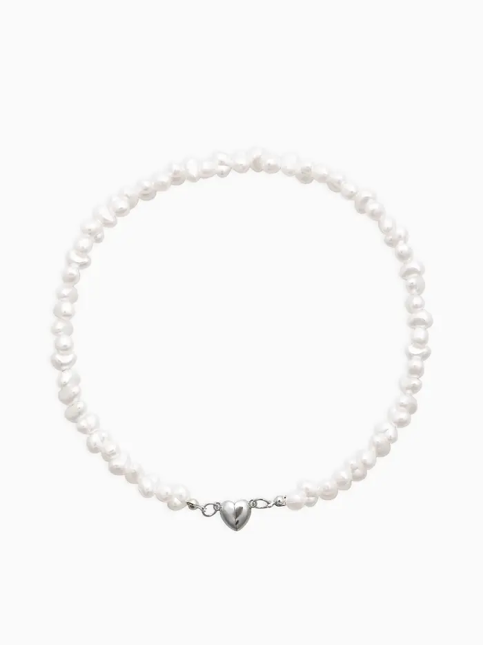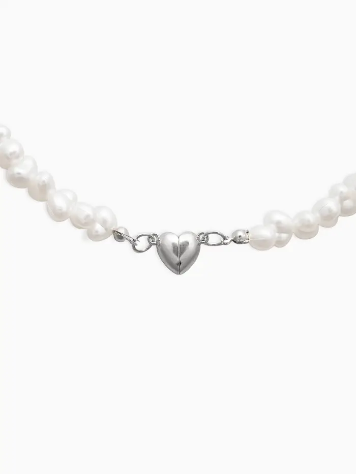 Колье жемчужное "Сердце" 35 см, цвет белый в серебре