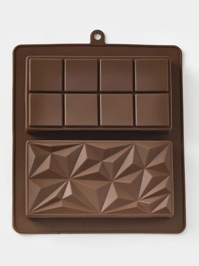 Форма для дубайского шоколада 2 плитки "Квадраты, пирамиды" 21x19x2,5 см