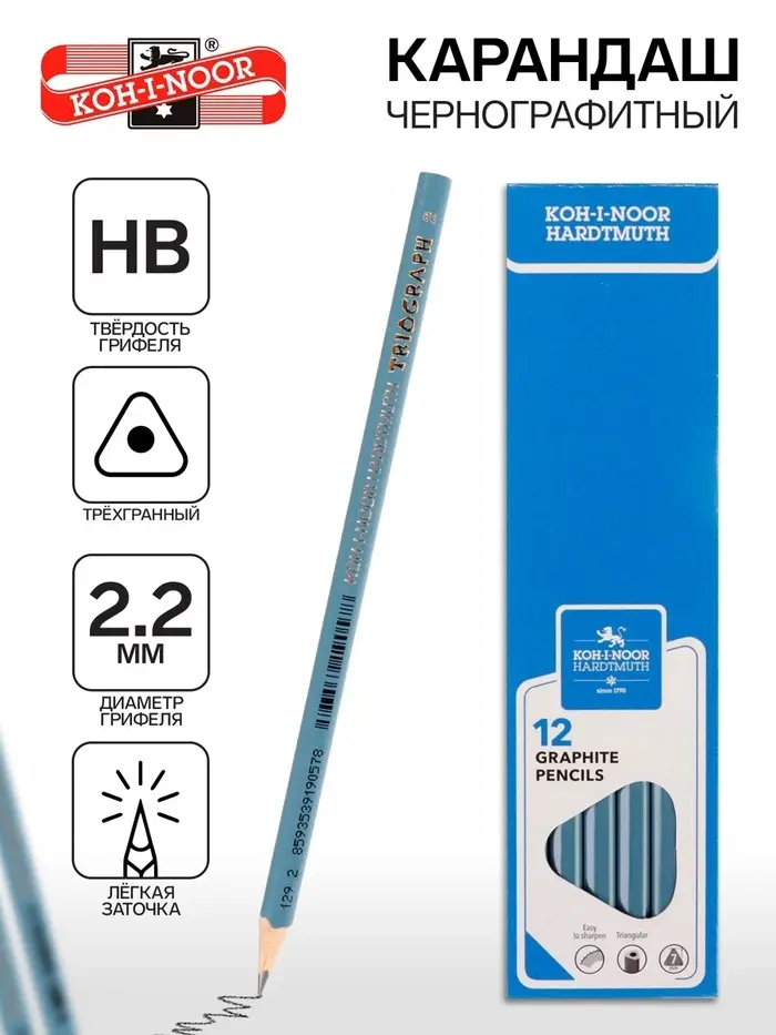 Карандаш чёрнографитный трёхгранный Н – прекрасное сочетание выгодной цены и высочайшего качества. Прочный графитовый стержень не ломается и не крошится, а деревянный корпус легко затачивается.