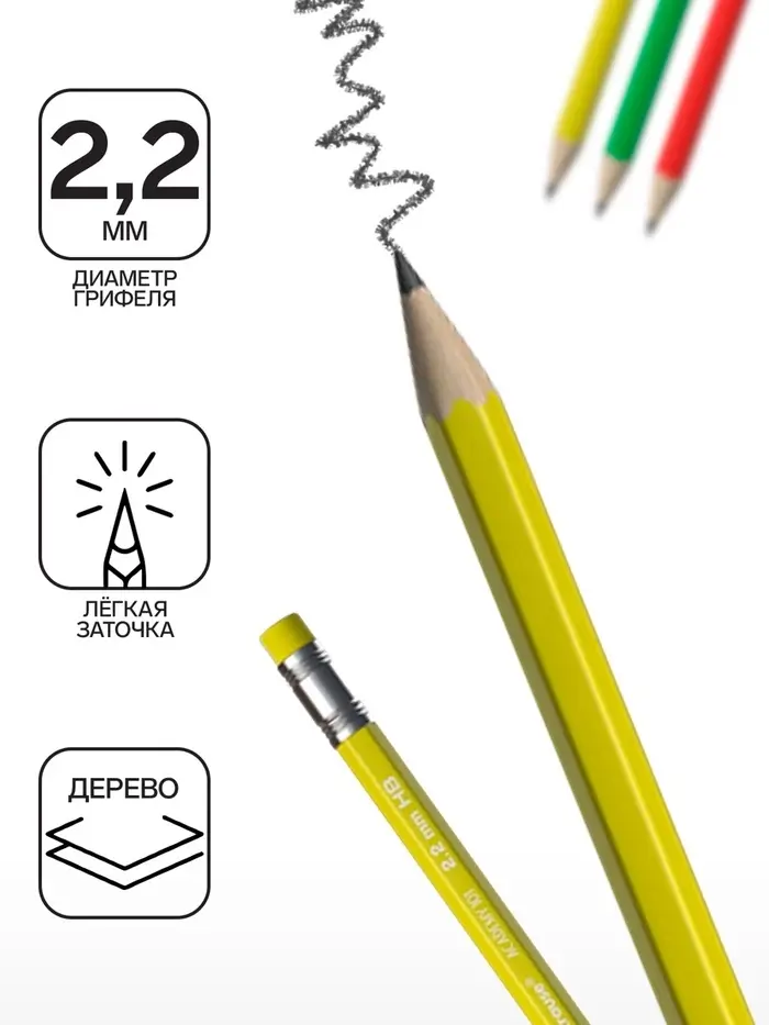 - Мягкая древесина и идеальная центровка грифеля гарантируют легкую заточку с экономным расходом карандаша.