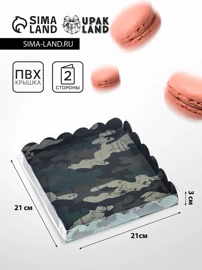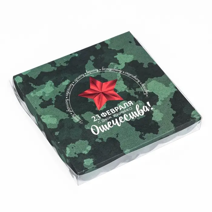 Коробка для печенья, кондитерская упаковка с PVC крышкой, «23 февраля», 21 х 21 х 3 см