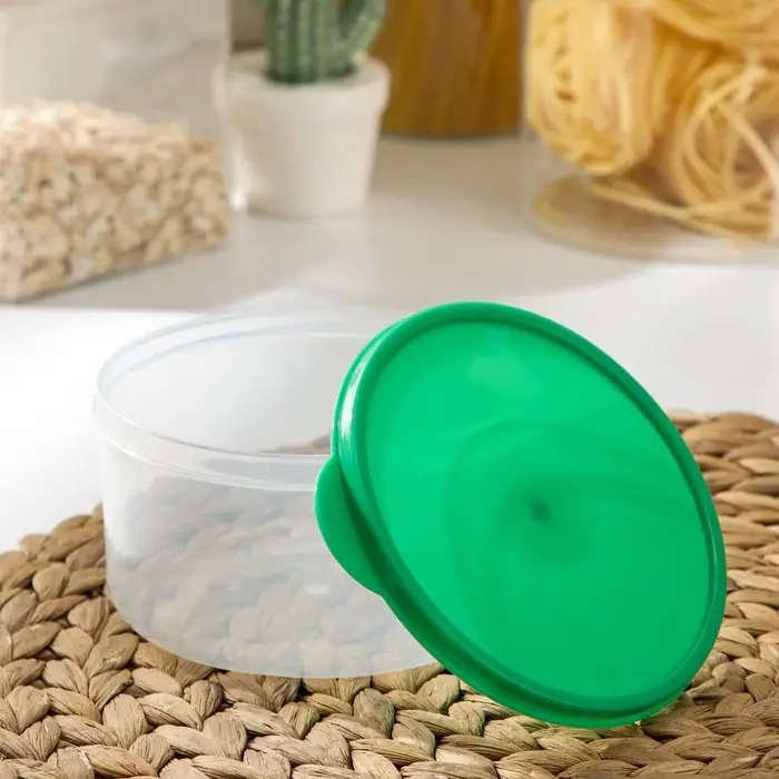 Контейнер круглый Доляна, пищевой, 500 мл, прозрачный, крышка зелёная