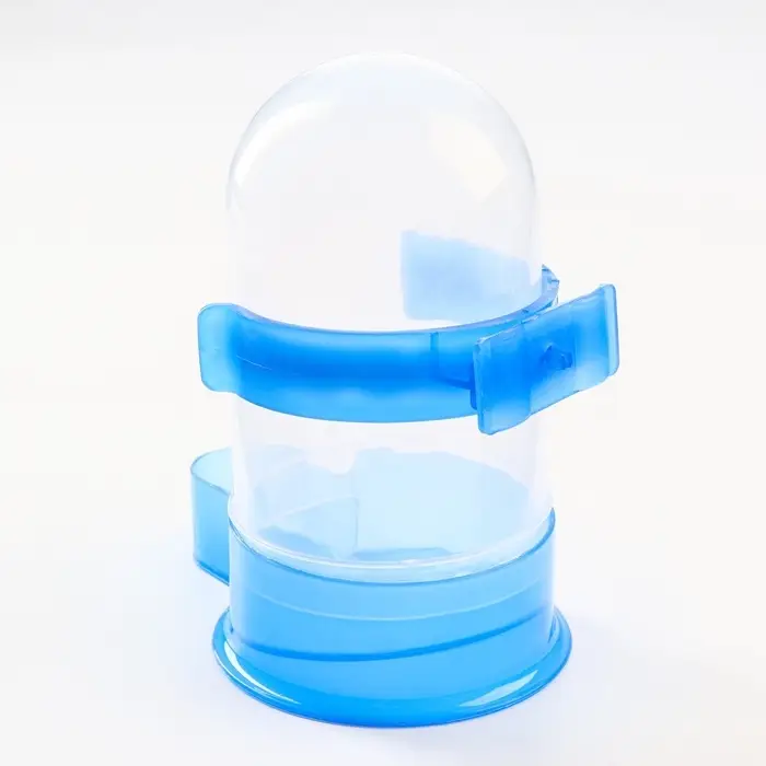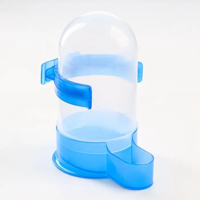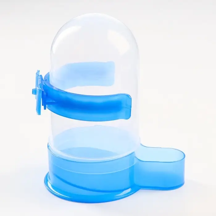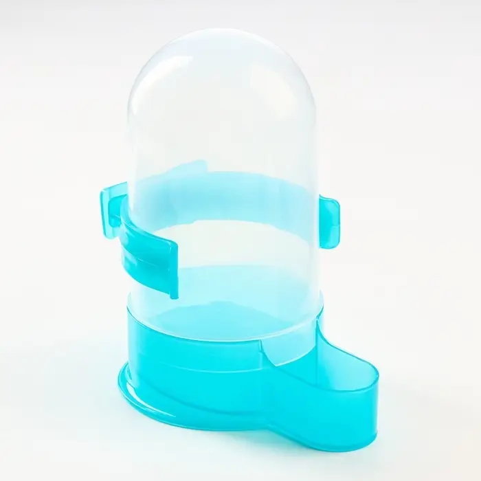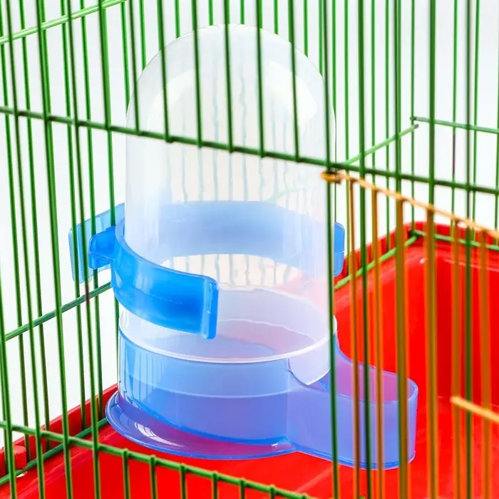 Универсальная поилка для птиц обеспечит пернатого питомца чистой водой в любое время суток. Она представляет собой пластиковую колбу, оснащенную дозатором, который подает ее по мере необходимости. За счет прозрачной текстуры поилки, можно легко контролировать уровень воды в ней.