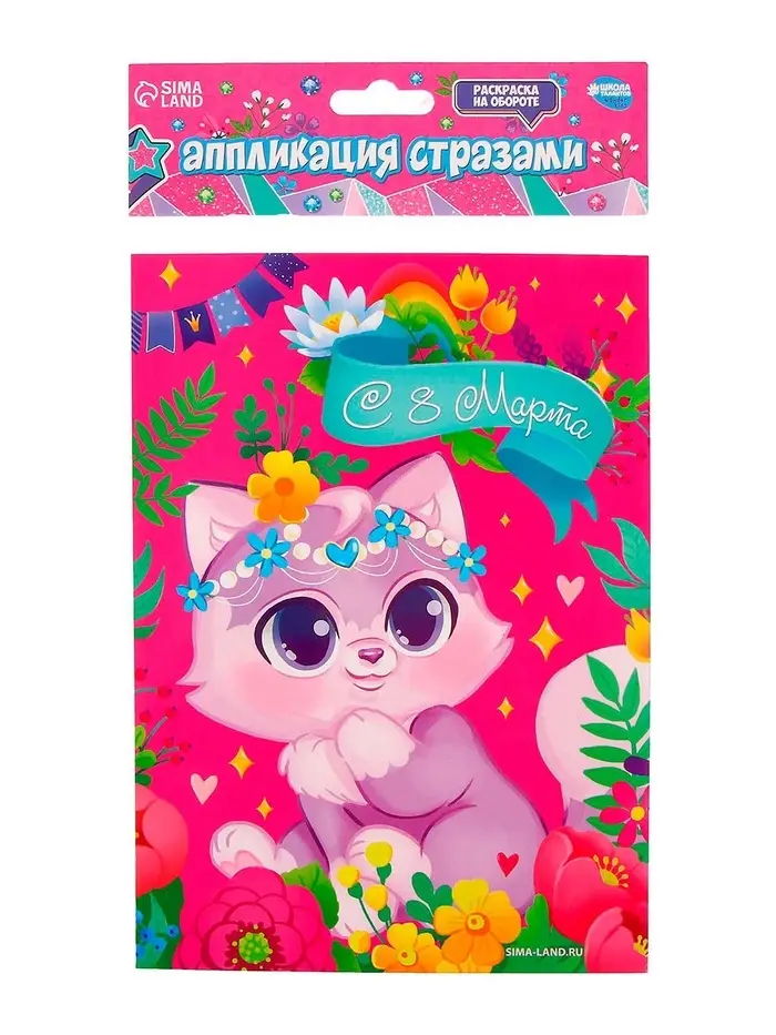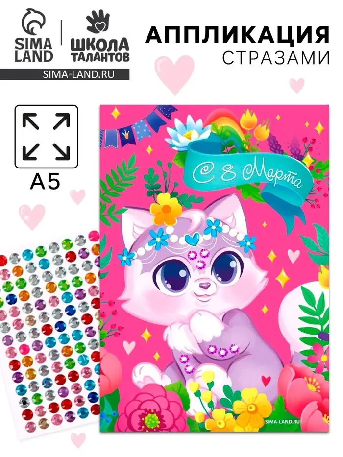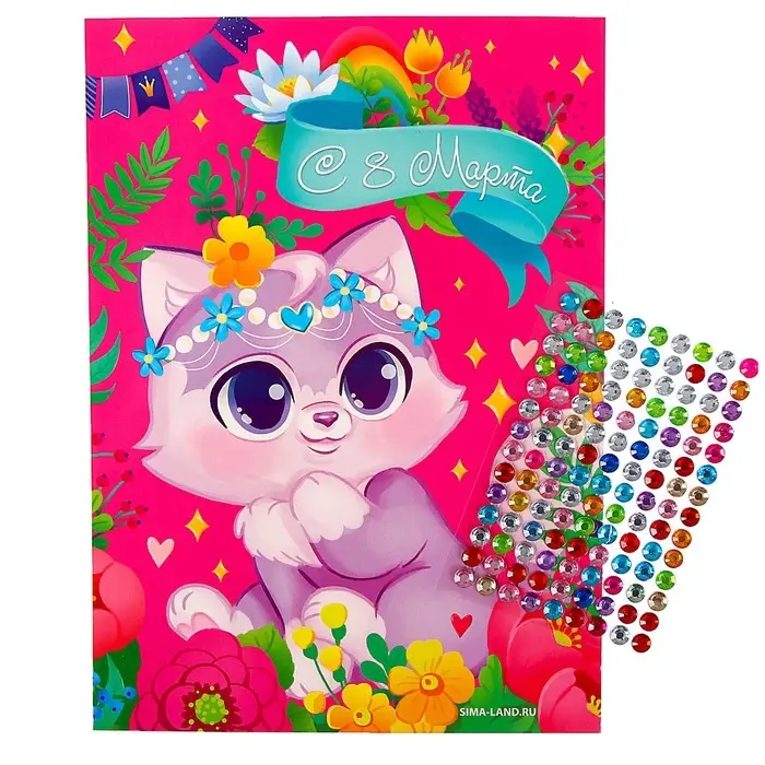 Аппликация стразами для детей «Котик. 8 марта», набор для творчества