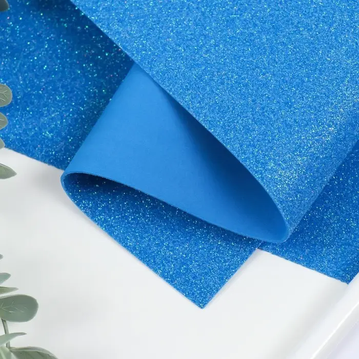 Фоамиран глиттерный 2 мм, 50х50 см, синий Н05