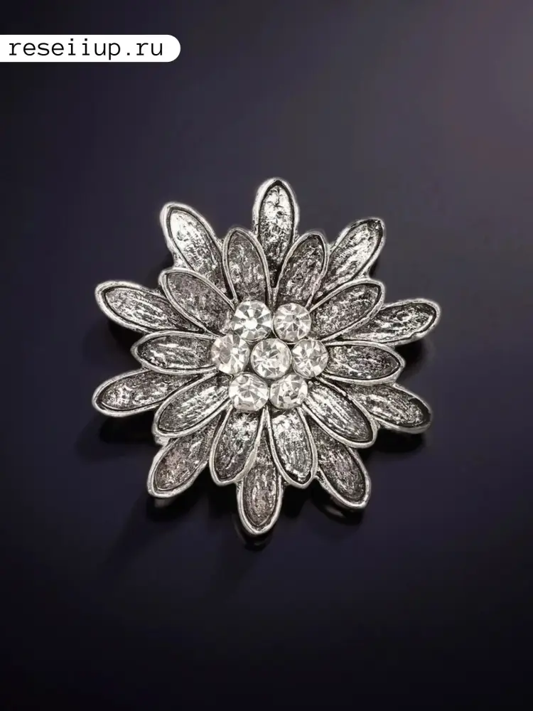 Кольцо для платка "Цветок Хризантема", цвет белый в чернёном серебре