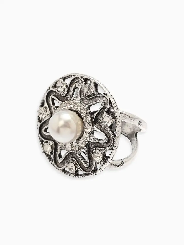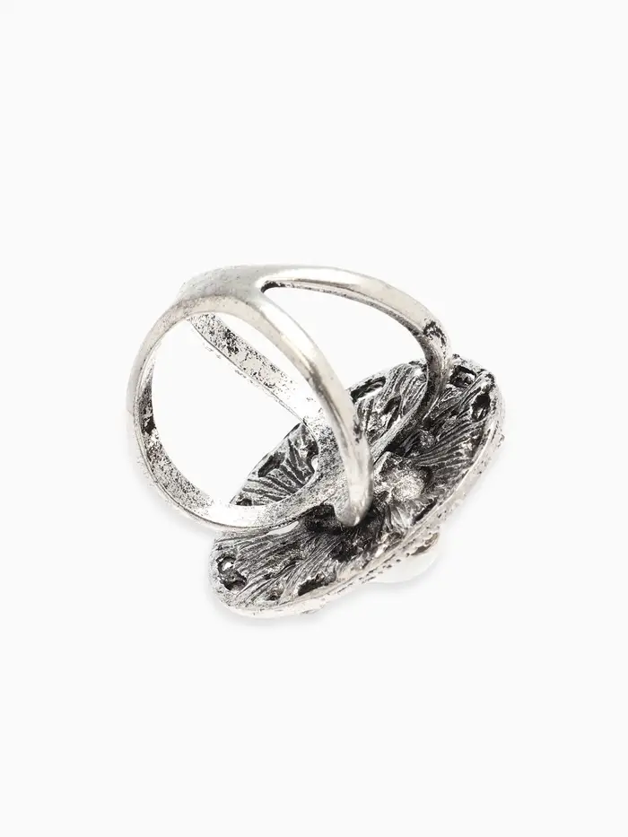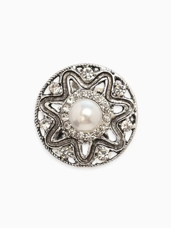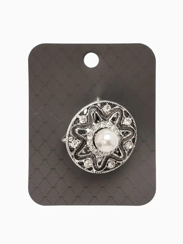 Кольцо для платка "Цветок в круге", цвет белый в чернёном серебре