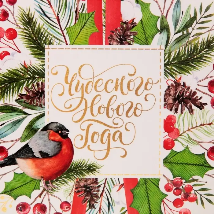 Новогодняя, Птицы, Растительный орнамент